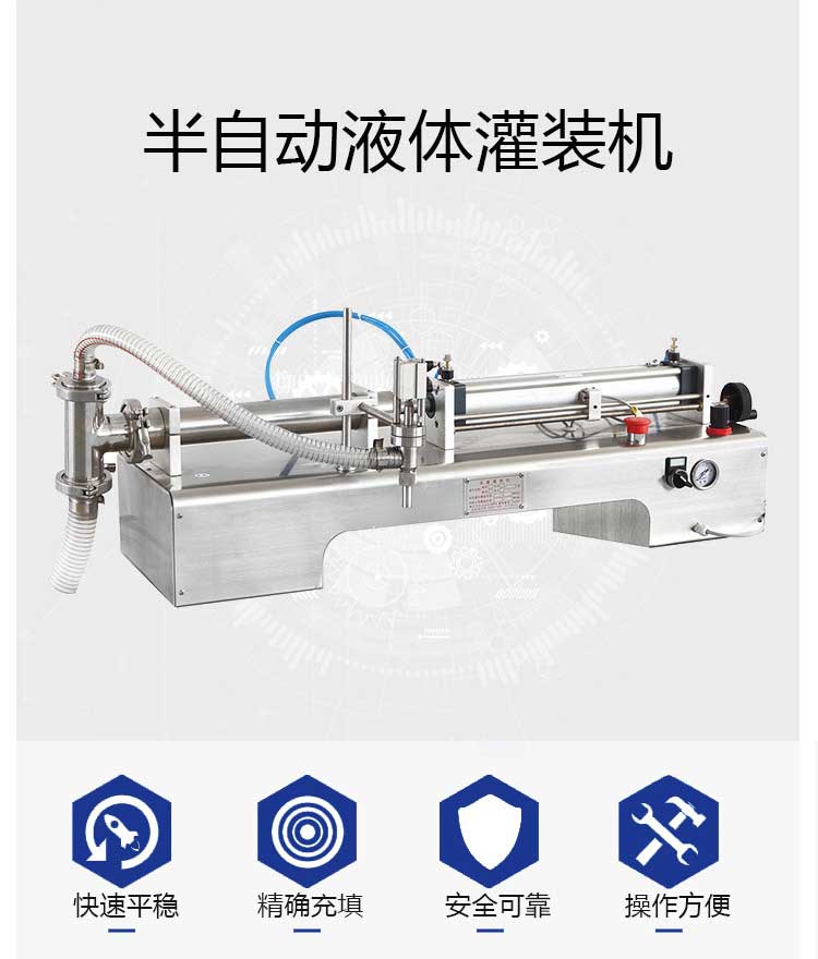 該粘稠液體灌裝機(jī)主要適用于有一定流動(dòng)性液體、粘稠液體的定量灌裝如:醬油、蜂蜜、油脂、糖漿、洗發(fā)液等粘稠液體