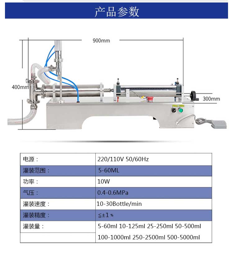 7.粘稠液體灌裝機(jī)可進(jìn)行自動(dòng)灌裝和腳踏開(kāi)關(guān)控制灌裝兩種工作方式的轉(zhuǎn)換根據(jù)粘液或膏體流動(dòng)性可隨時(shí)調(diào)節(jié)灌裝壓力