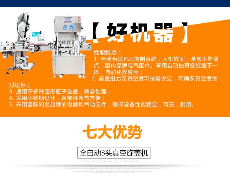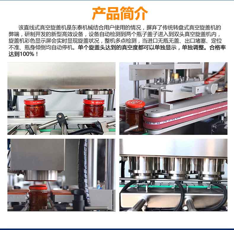 1、智能化全自動真空旋蓋機集自動理蓋、上蓋、自動旋蓋于一體,生產(chǎn)速度快,效率高,運行穩(wěn)定可靠.