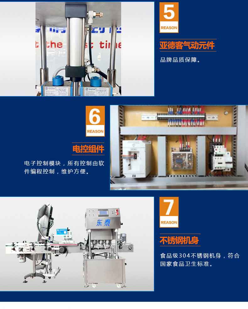 2、光電傳感器、接近開頭等采用的都是先進的傳感元件,確保無瓶不送蓋,卡瓶、缺蓋自動停機報警等功能,從而保證了自動上蓋的可靠性;