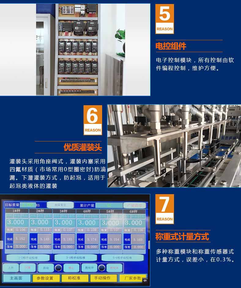 8、每個(gè)灌裝頭均有稱重和反饋系統(tǒng),可對(duì)每個(gè)頭的灌裝量進(jìn)行設(shè)置和微量調(diào)整。