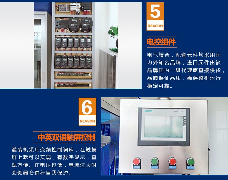 8. 其他廠家采用調(diào)速電機(jī),靠手動(dòng)旋轉(zhuǎn)電機(jī)上的轉(zhuǎn)輪來改變輸送帶的速度,調(diào)整只能憑感覺極為不方便。我們的灌裝機(jī)采用變頻控制調(diào)速,在觸摸屏上就可以實(shí)現(xiàn),有數(shù)字顯示,直觀方便。在電壓過低,電流過大時(shí)變頻器會(huì)進(jìn)行自我保護(hù)。