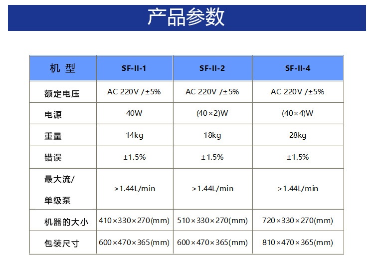 8.灌充量SF-II從1ml至10000ml可調(diào);SF-I從10ml-80000ml可調(diào),調(diào)節(jié)方便。