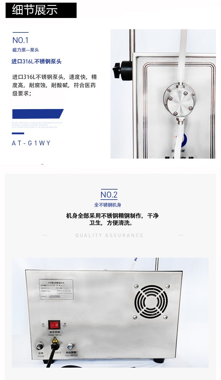 可灌充絕大類型的液體,包括高粘稠度的液體。如:各種藥劑、化學(xué)品、油類、化妝品、食品等無顆粒狀液體;灌裝精度高,適合實(shí)驗(yàn)室用。