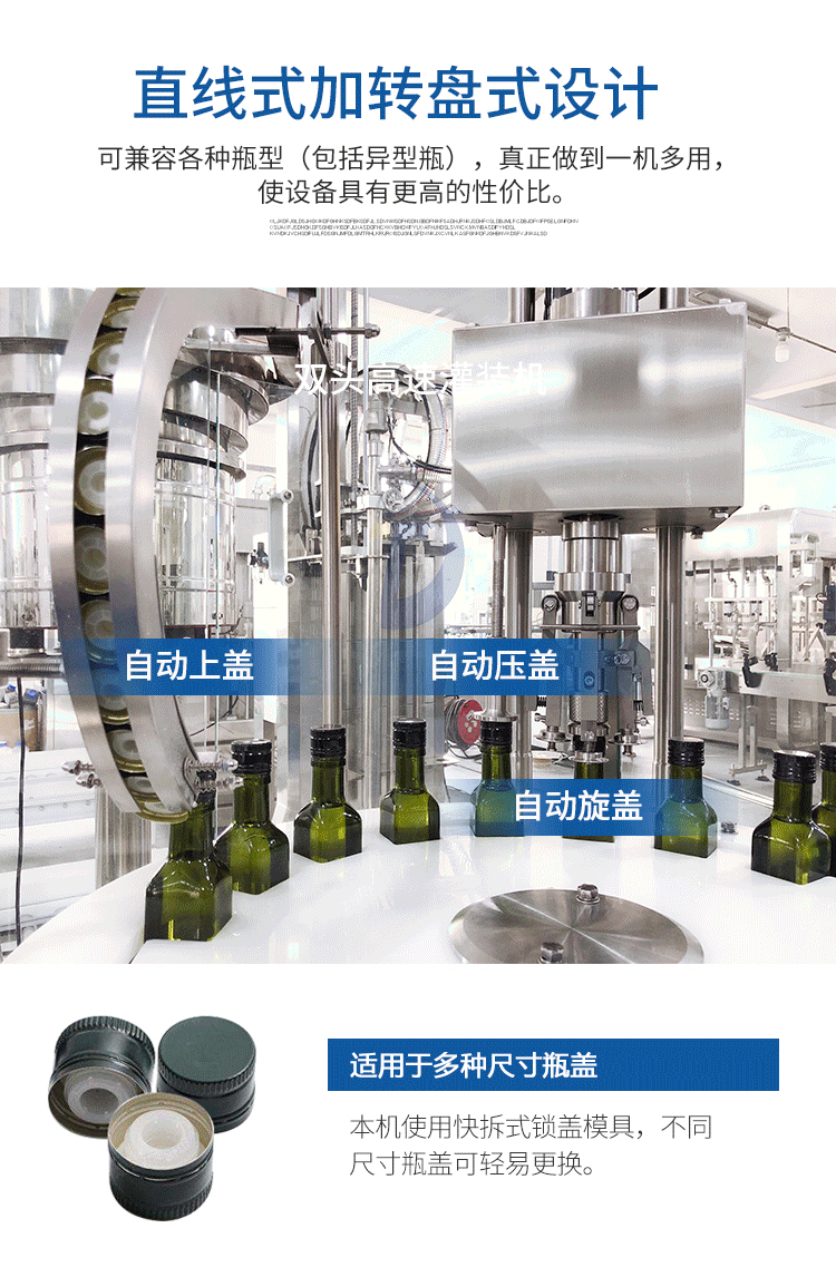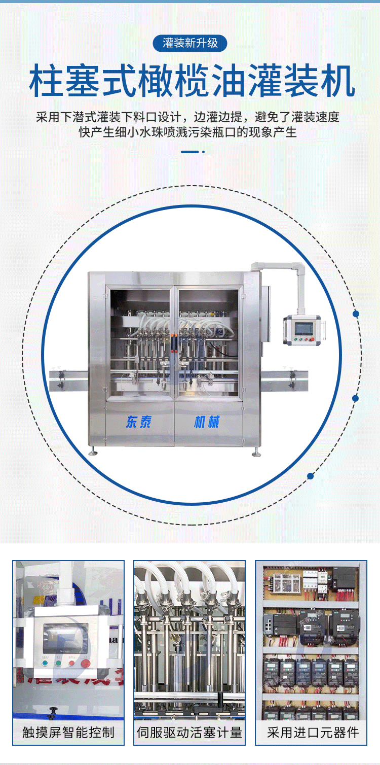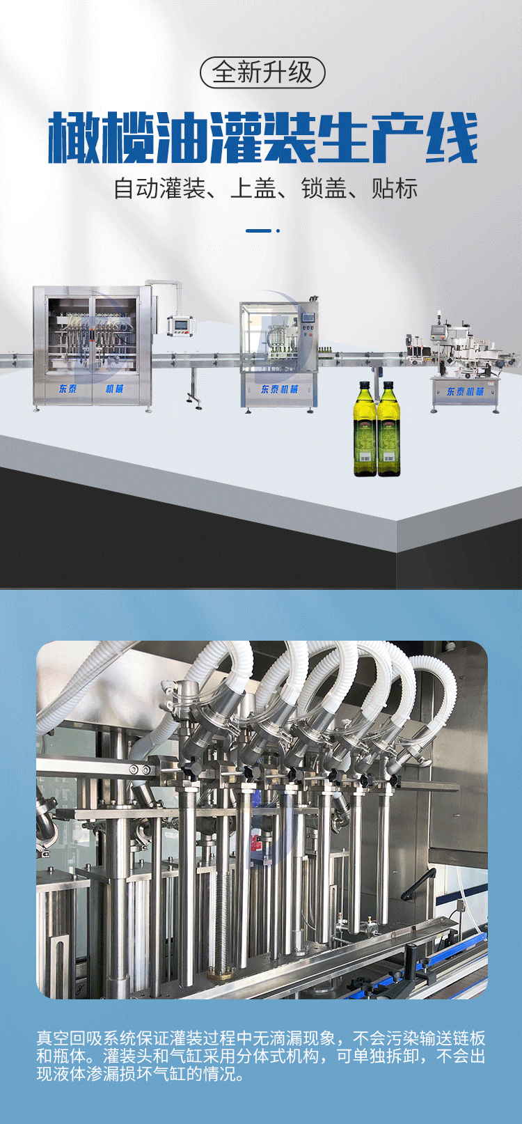 1.橄欖油灌裝線本機(jī)型是專為食用油設(shè)計(jì)。多年來,根據(jù)客戶工廠包裝使用情況,我們在設(shè)備的細(xì)節(jié)和功能上做了調(diào)整和改進(jìn),使灌裝機(jī)更加適合油脂包裝。特別是多頭多泵灌裝系統(tǒng)的研發(fā)成功。從根本上杜絕了物料滴漏。使灌裝速度、精度與穩(wěn)定性之間達(dá)到結(jié)合。市場現(xiàn)存的油脂包裝機(jī)。